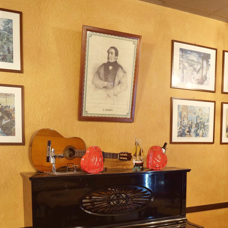Casa natale di Gioachino Rossini (550 mt), compositore pesarese di fama internazionale. Non tutti sanno che però l’autore del Barbiere di Siviglia, grande appassionato di cucina, definiva se stesso “pianista di terza classe, ma primo gastronomo dell’universo”. La sua passione, quasi mania, per il buon cibo lo portò a comporre “Peccati di vecchiaia”, una raccolta di piccoli pezzi per piano intitolata “Gli antipasti”, composta dai brani come “Acciughe” “Burro” “Ravanelli” etc.